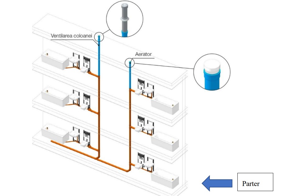 sunt racordate la coloana de canalizare. Aeratorul poate fi montat pentru coloane la